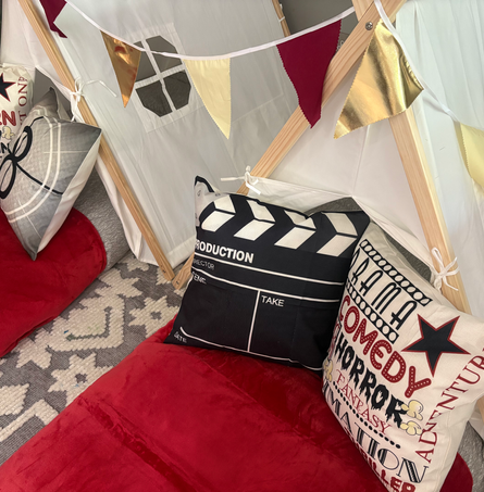 A glamorous night at the movie complete with reds golds and blacks. Perfect for falling asleep in front of a good movie